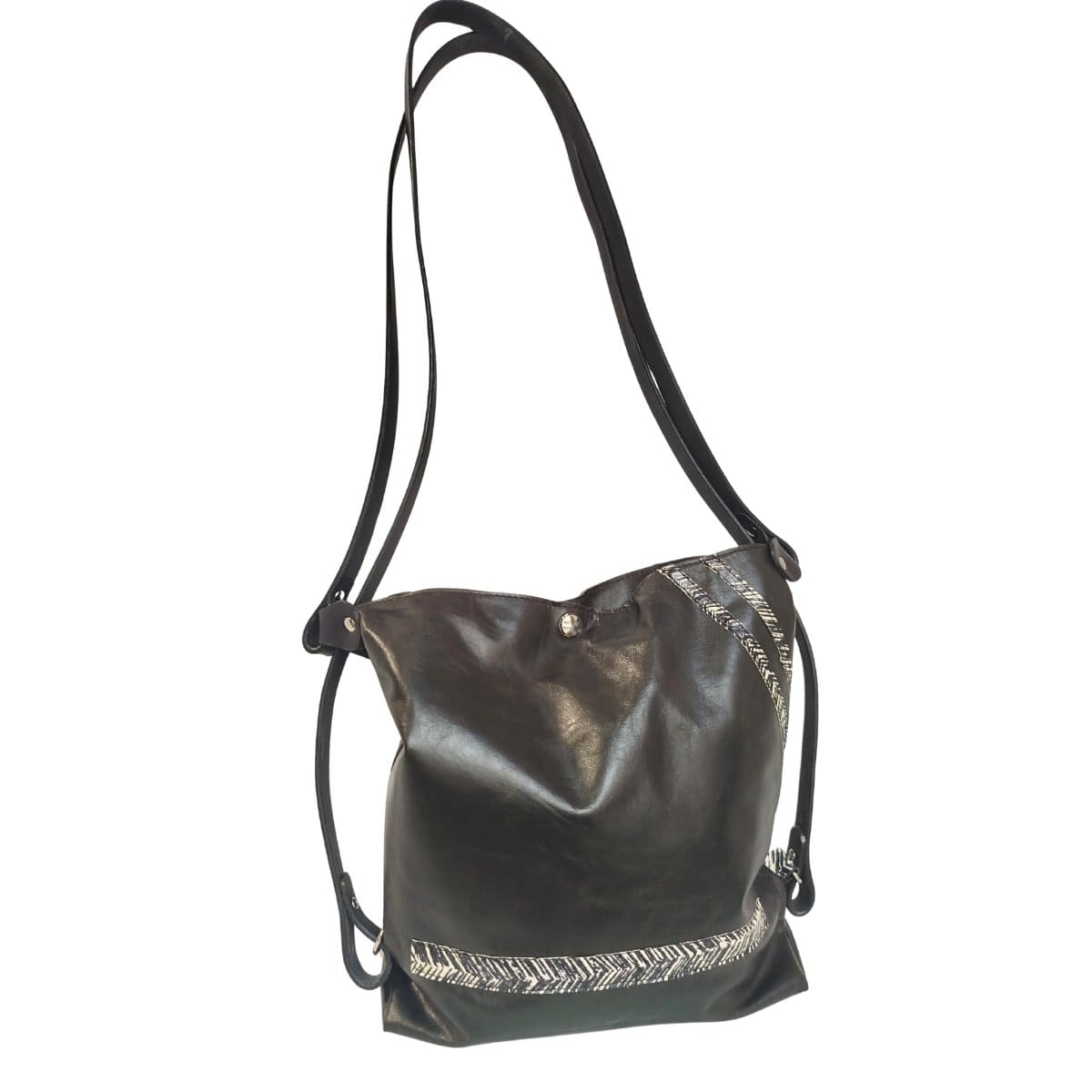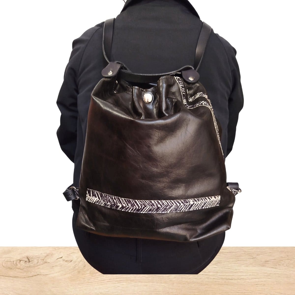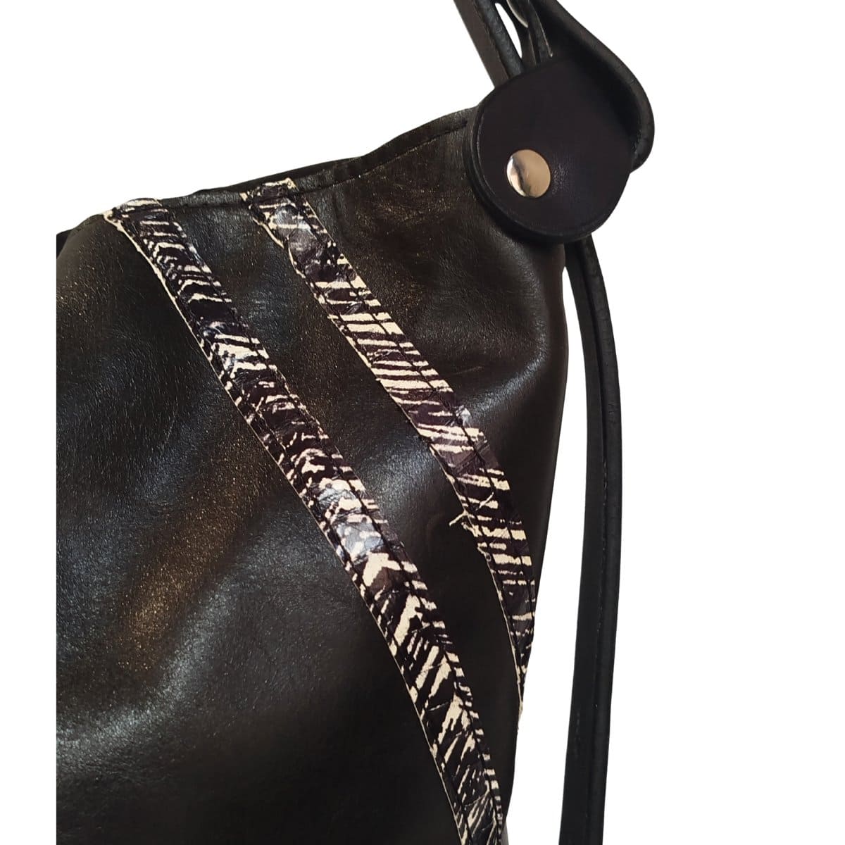 Le Versalia Graphique allie sobriété et audace : un sac convertible aux lignes épurées, sublimé par des bandes en cuir fantaisie noir et blanc qui rappellent l’allure d’un motif contemporain. Un modèle artisanal unique, pensé pour conjuguer style et modularité.