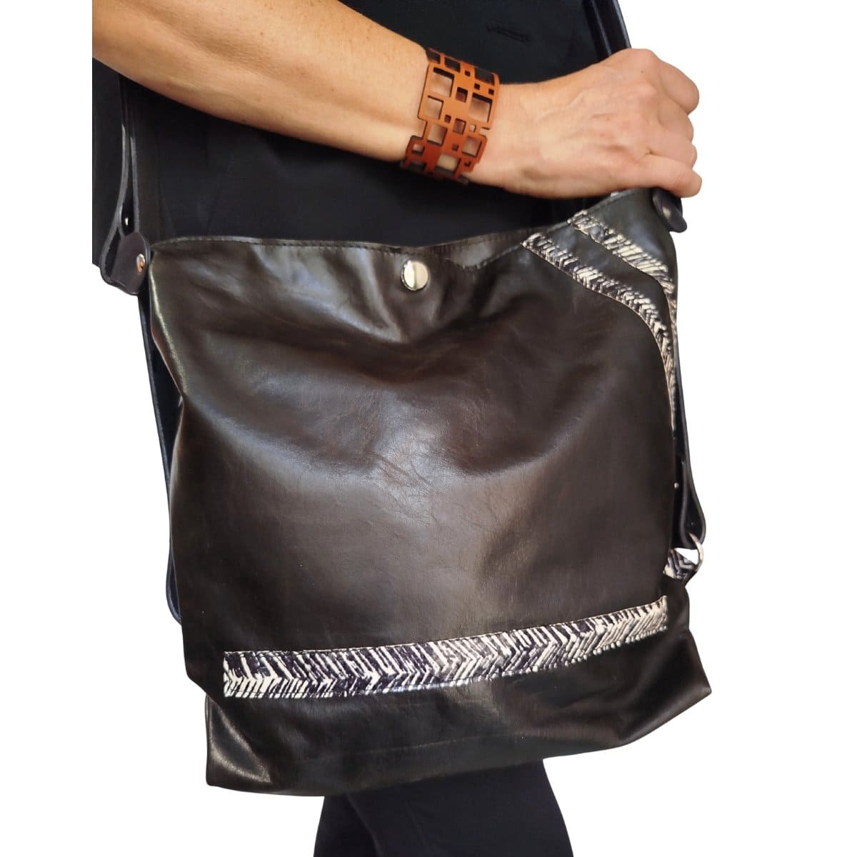 - 1 poche fermée (24 x 11 cm) avec bouton pression inox et cuir fantaisie
